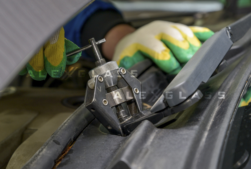 Старое лобовое стекло снимается мастерами «Алекс Гласс»